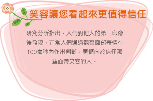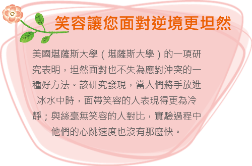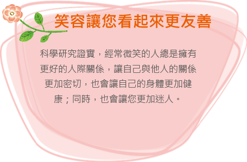 微笑是人們最好的語言,一個自然流露的微笑,勝過千言萬語,無論是初次謀面也好,相識已久也好,微笑能拉近人與人之間的距離,讓彼此之間倍感溫暖;微笑能給自己一種信心,也能給別人一種信心,從而更好地激發潛能。